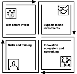 - Kleinprojekte bis 40.000€, zu 100% gefördert, um Digitalisierungsideen risikofrei zu testen.